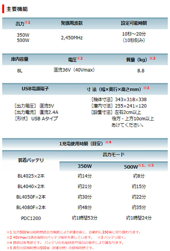 【正規店】マキタ 充電式電子レンジ MW001GZ 本体のみ 40Vmax 出力 500W/350W 容量 8L makita