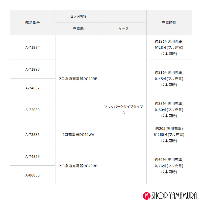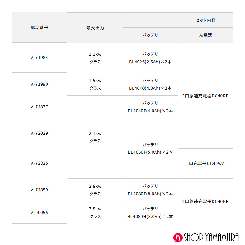 セール 前の商品 次の商品 【正規店】 マキタ パワーソースキット XGT16 A-00055 40V バッテリBL4080H×2 2口急速充電器DC40RB×1 ケース ¥215,820 元の価格は ¥215,820 でした。¥139,702現在の価格は ¥139,702 です。 円(税込) 在庫あり 【正規店】 マキタ パワーソースキット XGT16 A-00055 40V バッテリBL4080H×2 2口急速充電器DC40RB×1 ケース個 購入する 商品コード: a-00055a-00055 カテゴリー: 40V, バッテリ・充電器 ブランド: マキタ 説明 レビュー (0) 説明 標準付属品 ・バッテリ BL4080H A-77263 ×2 ・充電器 DC40RB ・マックパック タイプ3 A-60523 レビュー レビューはまだありません。 以前にこの商品を購入したことのあるログイン済みのユーザーのみレビューを残すことができます。 関連商品 セール 研削・研磨, 40V正規店 マキタ makita 40V 充電式マルノコ HS002GRDX 無線連動対応 刃物径165mm 付属品(バッテリBL4025×2本・充電器DC40RA ケース・鮫肌チップソー付) ¥121,880 元の価格は ¥121,880 でした。¥75,791現在の価格は ¥75,791 です。 円(税込) カートに入れる クイックビュー セール クイックビュー 穴あけ・締付, 40V正規店 送料無料マキタ makita 40V 充電式震動ドライバドリル HP001GRDX 付属品(バッテリ・充電器・ケース付) ¥115,060 元の価格は ¥115,060 でした。¥71,628現在の価格は ¥71,628 です。 円(税込) カートに入れる クイックビュー セール クイックビュー 研削・研磨, 40V正規店 マキタ maita 40V 充電式ディスクグラインダ パドルスイッチ 外径 125mm GA020GRMX 付属品(バッテリ×2本・充電器・ケース付) ¥116,490 元の価格は ¥116,490 でした。¥72,500現在の価格は ¥72,500 です。 円(税込) カートに入れる
