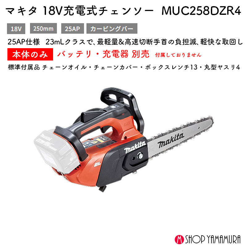 【正規店】 マキタ 充電式チェンソー MUC258DZR4 18V 25AP 250mmカービングバー 本体のみ