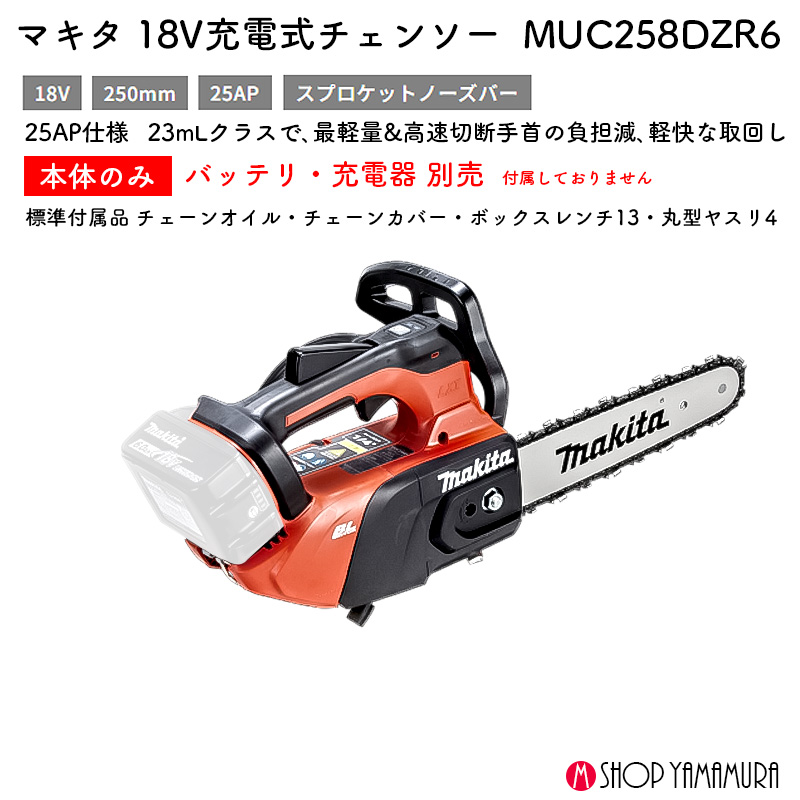 セール 前の商品 【正規店】 マキタ 充電式チェンソー MUC258DZR6 18V 25AP 250mmスプロケットノーズバー 本体のみ ¥56,980 元の価格は ¥56,980 でした。¥39,446現在の価格は ¥39,446 です。 円(税込) 23mLクラスで、最軽量・高速切断 在庫切れ 商品コード: muc258dzr6muc258dzr6 カテゴリー: 18V, チェンソー ブランド: マキタ 説明 レビュー (0) 説明 標準付属品 ・チェーンオイル ・チェーンカバー ・ボックスレンチ13 ・丸型ヤスリ4 レビュー レビューはまだありません。 以前にこの商品を購入したことのあるログイン済みのユーザーのみレビューを残すことができます。 関連商品 クイックビュー セール クイックビュー 切断・曲げ, 18V正規店 マキタ makita 165mm 充電式 卓上 マルノコ LS600DRG 18V 6.0Ah ハイパワーブラシレスモータ搭載 ノコ別売り ¥126,390 元の価格は ¥126,390 でした。¥78,544現在の価格は ¥78,544 です。 円(税込) カートに入れる クイックビュー セール クイックビュー 穴あけ・締付, 18V正規店 マキタ makita 18V 24mm充電式ハンマドリル HR244DRGX(6.0Ah) ¥114,400 元の価格は ¥114,400 でした。¥71,224現在の価格は ¥71,224 です。 円(税込) カートに入れる クイックビュー セール クイックビュー 18V, 研削・研磨正規店 マキタ makita グラインダ 18v 100mm 充電式ディスクグラインダ GA408DZ 本体のみ ¥31,900 元の価格は ¥31,900 でした。¥20,860現在の価格は ¥20,860 です。 円(税込) カートに入れる
