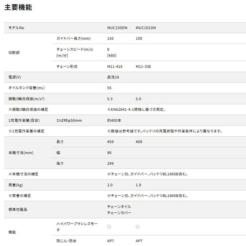 セール 前の商品 【正規店】 マキタ 充電式ハンディソー MUC150DZN 150mm 手のこ 40V M11 鋸 本体のみ ¥41,910 元の価格は ¥41,910 でした。¥28,845現在の価格は ¥28,845 です。 円(税込) 薄刃M11仕様が新登場 在庫あり 【正規店】 マキタ 充電式ハンディソー MUC150DZN 150mm 手のこ 40V M11 鋸 本体のみ個 購入する 商品コード: muc150dznmuc150dzn カテゴリー: ハンディソー, 40V, チェンソー, バッテリ種類 ブランド: マキタ 説明 説明 標準付属品 ・チェーンオイル ・チェーンカバー 関連商品 クイックビュー セール クイックビュー 18V, 充電式クリーナー, バッテリ種類【正規店】 マキタ 充電式クリーナ CL180FDRFW コードレス掃除機 白 付属品(バッテリ・充電器付き) makita ¥45,100 元の価格は ¥45,100 でした。¥28,573現在の価格は ¥28,573 です。 円(税込) カートに入れる クイックビュー セール クイックビュー 充電式クリーナー, 40V, バッテリ種類【正規店】 マキタ 充電式クリーナー CL002GRDO オリーブ 40V コードレス 掃除機 付属品(バッテリ・充電器付) 紙パック式 makita ¥62,260 元の価格は ¥62,260 でした。¥39,048現在の価格は ¥39,048 です。 円(税込) カートに入れる クイックビュー セール クイックビュー 充電式クリーナー, 40V, バッテリ種類【正規店】マキタ 40V コードレス掃除機 充電式クリーナー ロック付サイクロンアタッチメント付 CL002GZCO オリーブ 紙パック式 本体のみ バッテリ・充電器別売 makita ¥27,170 元の価格は ¥27,170 でした。¥17,626現在の価格は ¥17,626 です。 円(税込) カートに入れる