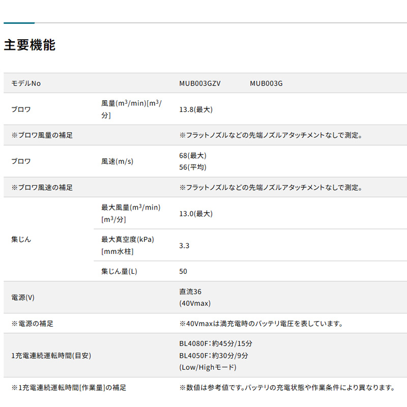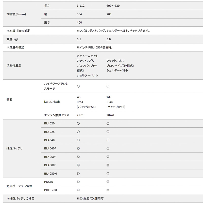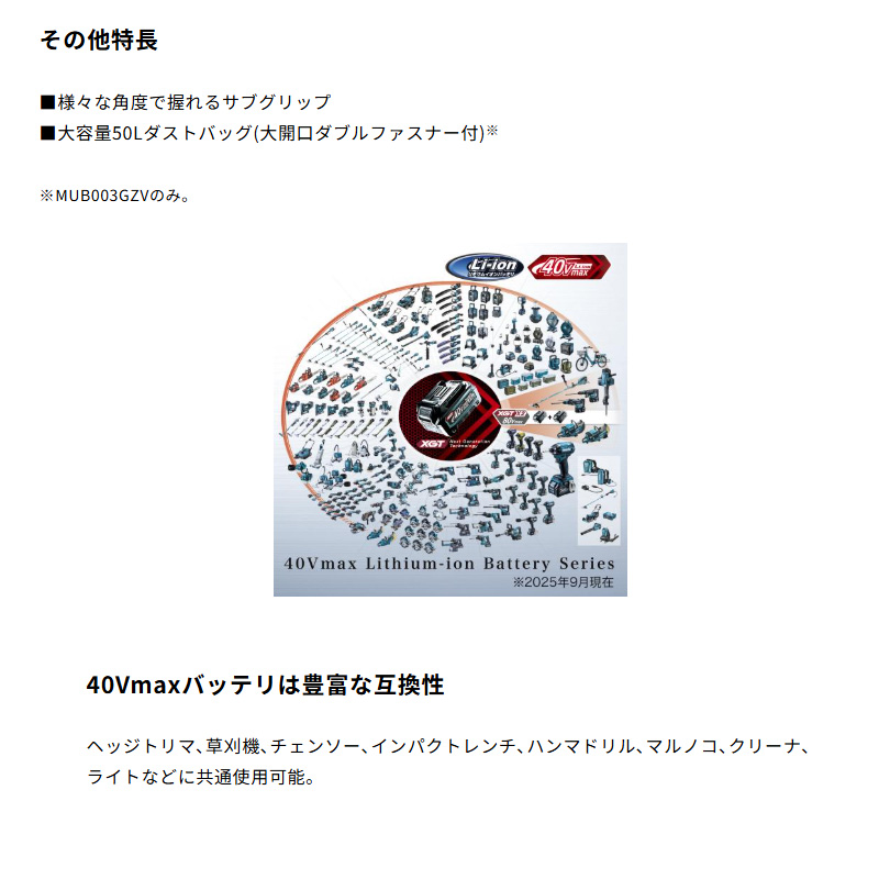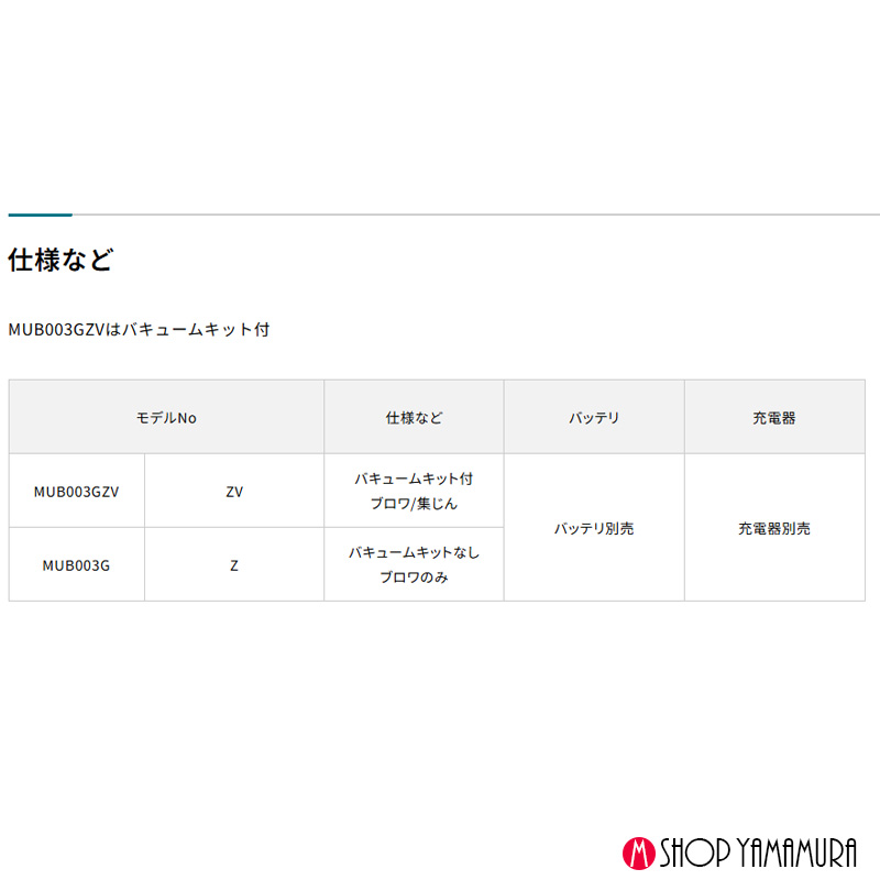 セール 前の商品 次の商品 【正規店】 マキタ 充電式ブロワ MUB003GZ 40V 本体のみ バキュームキット無し ¥70,510 元の価格は ¥70,510 でした。¥43,678現在の価格は ¥43,678 です。 円(税込) エンジン式と同等の吸い込み力 在庫切れ 商品コード: mub003gzmub003gz カテゴリー: ブロア, 集じん ブロア ロボットクリーナー, 40V ブランド: マキタ 説明 レビュー (0) 説明 標準付属品 ・フラットノズル ・ブロワパイプ(伸縮式) ・ショルダーベルト レビュー レビューはまだありません。 以前にこの商品を購入したことのあるログイン済みのユーザーのみレビューを残すことができます。 関連商品 クイックビュー セール クイックビュー 40V, 園芸【正規店】 マキタ 充電式ヘッジトリマ MUH016GZ 40Vmax 刃物長300mm makita 本体のみ ¥48,510 元の価格は ¥48,510 でした。¥33,431現在の価格は ¥33,431 です。 円(税込) カートに入れる クイックビュー セール クイックビュー 研削・研磨, 40V正規店 マキタ maita 40V 充電式ディスクグラインダ スライドスイッチタイプ 外径100mm GA001GZ ¥33,660 元の価格は ¥33,660 でした。¥21,935現在の価格は ¥21,935 です。 円(税込) カートに入れる クイックビュー セール クイックビュー 充電式クリーナー, 40V, バッテリ種類【正規店】 マキタ 充電式クリーナー CL003GRDW 白 フルセット サイクロン一体式 40V コードレス掃除機 付属品 (バッテリBL4025・充電器DC40RA付) makita ¥65,010 元の価格は ¥65,010 でした。¥40,726現在の価格は ¥40,726 です。 円(税込) カートに入れる