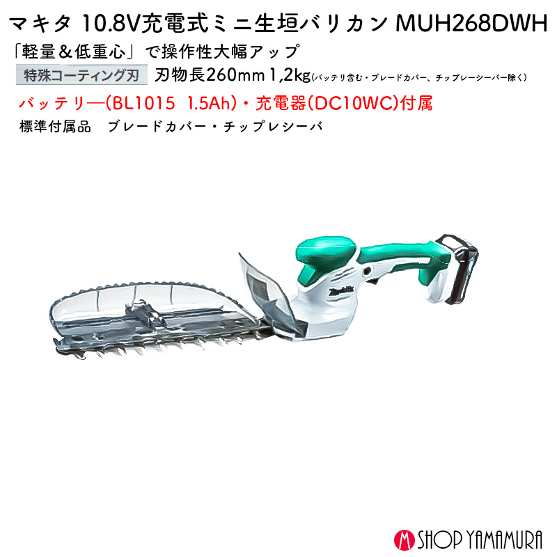 セール 前の商品 次の商品 【正規店】 マキタ 充電式ミニ生垣バリカン MUH268DWH 10.8V 260mm 特殊コーティング刃 バッテリー・充電器付 ¥28,270 元の価格は ¥28,270 でした。¥18,005現在の価格は ¥18,005 です。 円(税込) 軽量で低重心タイプ 在庫切れ 商品コード: muh268dwhmuh268dwh カテゴリー: 生垣バリカン, 10.8V, 園芸 ブランド: マキタ 説明 レビュー (0) 説明 標準付属品 ・ブレードカバー ・チップレシーバ ・バッテリー BL1015 ・充電器 DC10WC レビュー レビューはまだありません。 以前にこの商品を購入したことのあるログイン済みのユーザーのみレビューを残すことができます。 関連商品 セール チェンソー, 園芸正規店 マキタ 充電式チェンソー 36V MUC256DZF/DZFR 本体のみ ガイドバー長さ250mm ¥54,120 元の価格は ¥54,120 でした。¥31,428現在の価格は ¥31,428 です。 円(税込) カートに入れる クイックビュー セール クイックビュー 18V, 園芸正規店 マキタ makita 充電式 芝生バリカン MUM604DZ 18V 刈込幅160mm 本体のみ(バッテリー・充電器別売り) ¥14,190 元の価格は ¥14,190 でした。¥10,575現在の価格は ¥10,575 です。 円(税込) カートに入れる クイックビュー セール クイックビュー チェンソー, 園芸正規店 マキタ 充電式チェンソー 36V MUC306DZF/DZFR 本体のみ ガイドバー長さ300mm ¥56,540 元の価格は ¥56,540 でした。¥32,135現在の価格は ¥32,135 です。 円(税込) カートに入れる