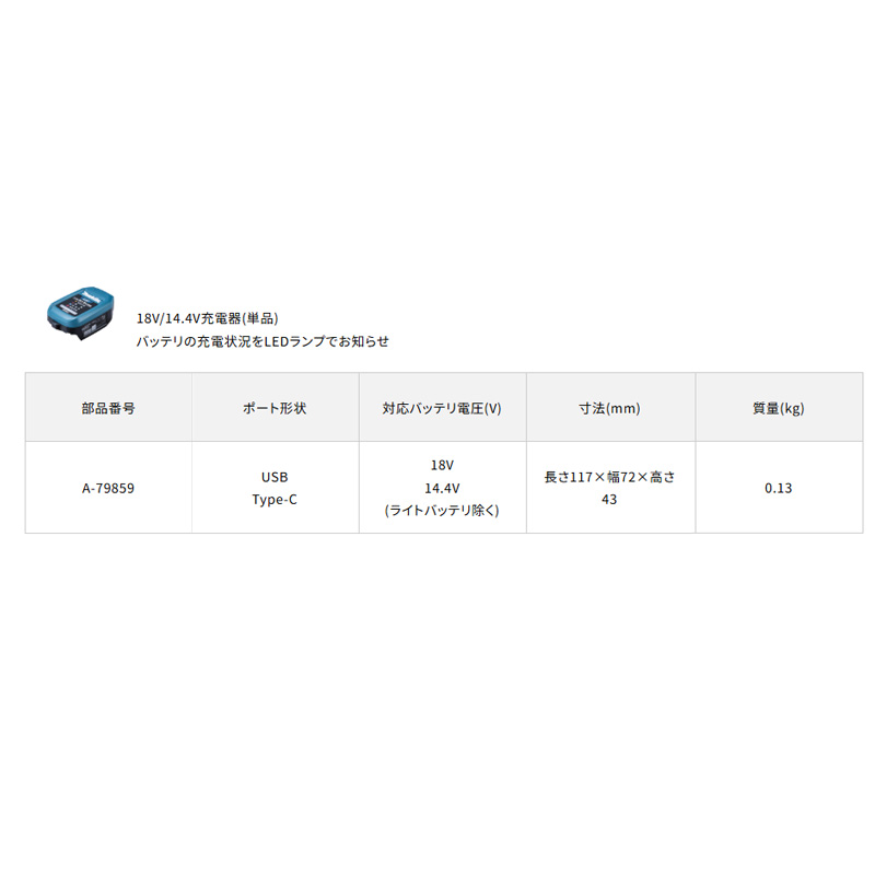 【正規店】 マキタ 自動車用充電器 単品 A-79859 DC18SJ用