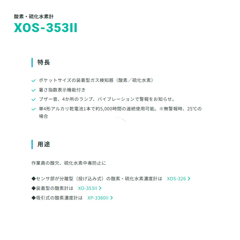 セール 前の商品 次の商品 新コスモス電機 XOS-353II装着型酸素・硫化水素計 XOS-353II対象ガス:O2、H2S ¥114,400 元の価格は ¥114,400 でした。¥105,087現在の価格は ¥105,087 です。 円(税込) 残り在庫1個 新コスモス電機 XOS-353II装着型酸素・硫化水素計 XOS-353II対象ガス:O2、H2S個 購入する 商品コード: cosmos-065cosmos-065 カテゴリー: ガス検知器 ブランド: 新コスモス電機 説明 レビュー (0) 説明 標準付属品 単4形アルカリ乾電池1本 安全ピンアダプタ1個(取付ねじ付) レビュー レビューはまだありません。 以前にこの商品を購入したことのあるログイン済みのユーザーのみレビューを残すことができます。 関連商品 クイックビュー セール クイックビュー ガス検知器新コスモス電機 XP-302M-R-C-2マルチ型ガス検知器 XP-302M-R-C-2対象ガス:O2、メタン、CO(8mガス導入管、レザーケース) ¥217,800 元の価格は ¥217,800 でした。¥199,218現在の価格は ¥199,218 です。 円(税込) カートに入れる クイックビュー セール クイックビュー ガス検知器新コスモス電機 XOC-2200装着型酸素・一酸化炭素計 XOC-2200対象ガス:O2、CO ¥112,200 元の価格は ¥112,200 でした。¥103,084現在の価格は ¥103,084 です。 円(税込) カートに入れる クイックビュー セール クイックビュー ガス検知器新コスモス電機 XP-302M-R-B-1マルチ型ガス検知器 XP-302M-R-B-1.対象ガス:O2、イソブタン、H2S(1mガス導入管(ドレンフィルタ付き)、レザーケース) ¥211,200 元の価格は ¥211,200 でした。¥193,208現在の価格は ¥193,208 です。 円(税込) カートに入れる