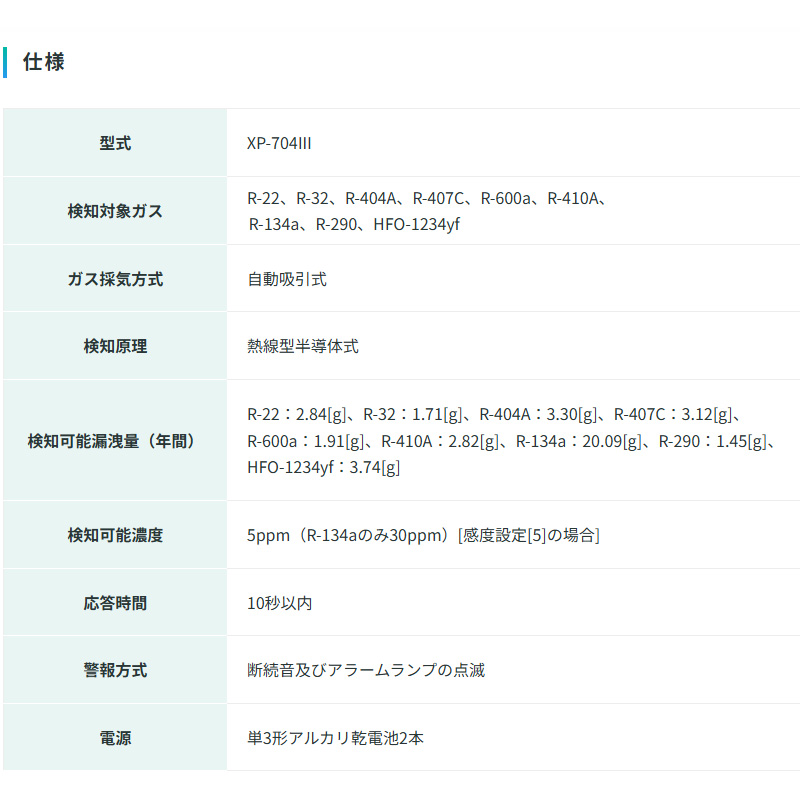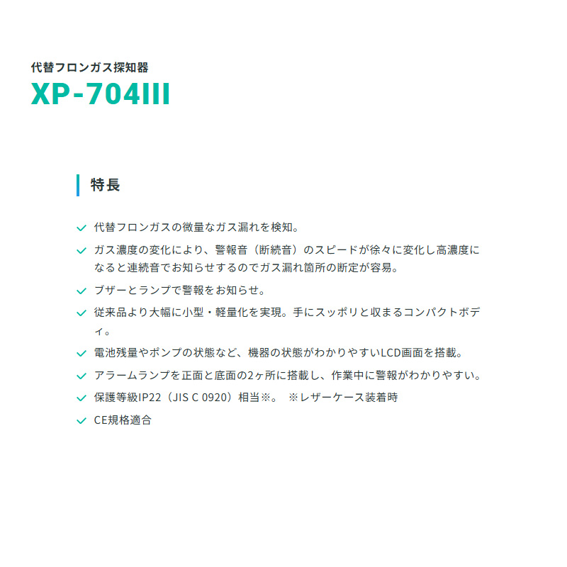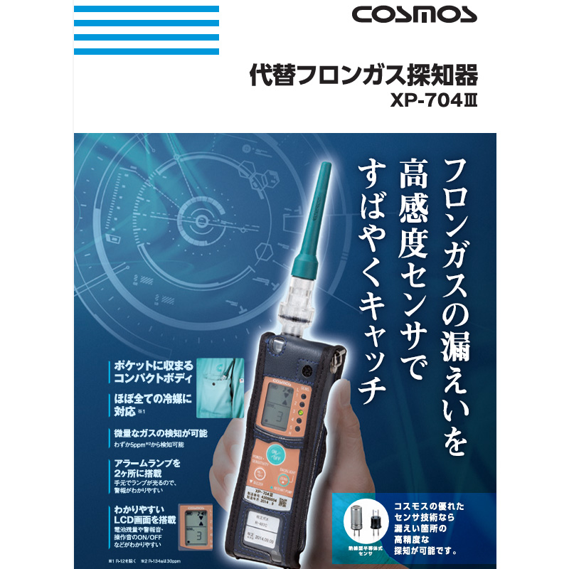 新コスモス電機 XP-704III代替フロンガス探知器 XP-704III対象ガス:R-22、R-32、R-404A、R-407C、R-600a、R-410A、R-134a、R-290、HFO-1234yf