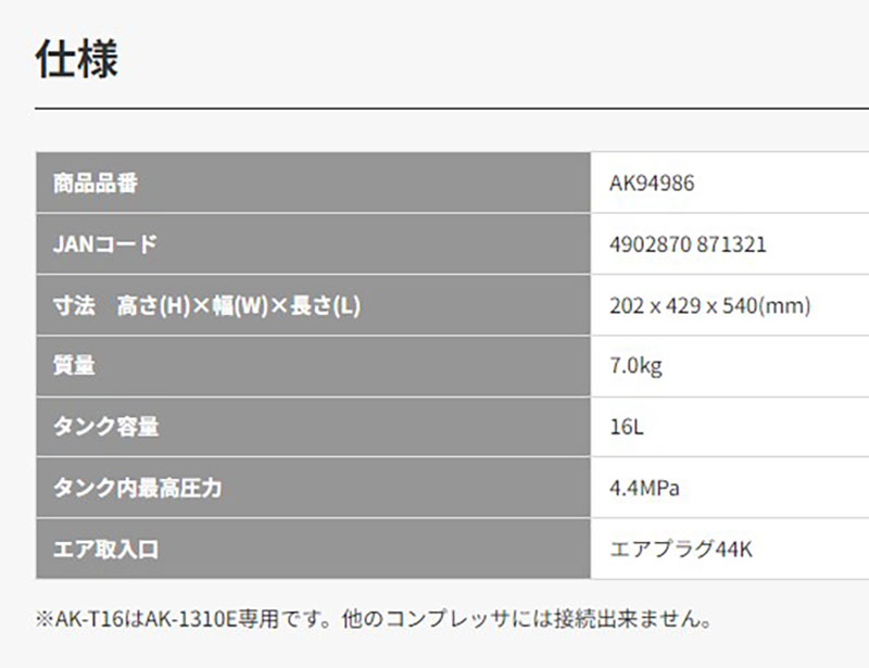 セール 前の商品 次の商品 MAX マックス AK-T16(44K) 高圧 エアコンプレッサー AK1310用 着脱式3連タンク AK94986 ¥101,200 元の価格は ¥101,200 でした。¥77,501現在の価格は ¥77,501 です。 円(税込) 在庫切れ 商品コード: ak94986ak94986 カテゴリー: エアコンプレッサ, エア ブランド: MAX 説明 レビュー (0) 説明 標準付属品 ・エアチャック44K ASSY レビュー レビューはまだありません。 以前にこの商品を購入したことのあるログイン済みのユーザーのみレビューを残すことができます。 関連商品 クイックビュー セール クイックビュー エア正規店 マキタ エアタッカ AT1025BZK ステープル幅10mm(J線) ケース付 ¥21,780 元の価格は ¥21,780 でした。¥14,683現在の価格は ¥14,683 です。 円(税込) カートに入れる クイックビュー セール クイックビュー 10.8V スライド式, エア正規店 マキタ makita 充電式 タッカ ステープルRT線専用 ST313DSH 10.8V 1.5AhK バッテリBL1015・充電器DC10SA・ケース付 ¥43,560 元の価格は ¥43,560 でした。¥27,979現在の価格は ¥27,979 です。 円(税込) カートに入れる クイックビュー セール クイックビュー エア正規店 マキタ エア波釘打 AJ150 波釘幅25mm ¥170,940 元の価格は ¥170,940 でした。¥105,741現在の価格は ¥105,741 です。 円(税込) カートに入れる